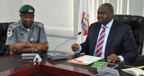 Ibrahim Lamorde, Executive Chairman EFCC, with Abdullahi Inde Dikko, Comproller General Nigerian Customs, during a courtesy visit to the Commission's headquarters in Abuja, recently.
