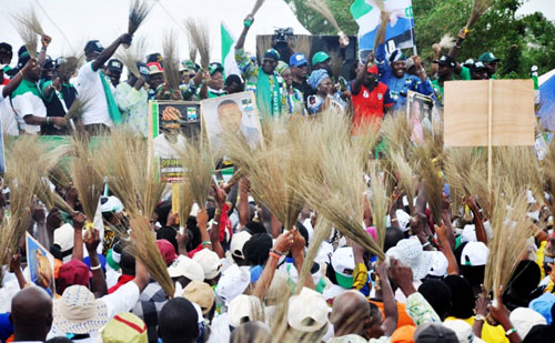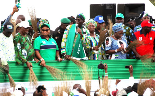 Supporters of the Action Congress of Nigeria during the Mega Rally of the party at the Centre for Management Development, Kosofe Local Government Area, Lagos, on Monday, March 14, 2011. INSET: Lagos State Governor, Mr. Babatunde Fashola SAN (middle) addressing the party supporters. With him are: His running mate, Hon (Mrs) Adejoke Orelope-Adefulire (left) and Deputy Governor of Lagos State, Princess Sarah Adebisi Sosan (right).Lagos State Governor, Mr. Babatunde Fashola SAN (middle) acknowledging cheers from supporters of the Action Congress of Nigeria during the party’s Mega Rally at the Centre for Management Development, Kosofe Local Government Area on Monday, March 14, 2011.Lagos State Governor, Mr. Babatunde Fashola SAN (middle) acknowledging cheers from supporters of the Action congress of Nigeria during the party’s Mega Rally at the Centre for Management Development, Kosofe Local Government Area on Monday, March 14, 2011. With him are: His running mate, Hon (Mrs) Adejoke Orelope-Adefulire (2nd left) and other party chieftain.A Supporters of the Action Congress of Nigeria during the Mega Rally of the party at the Centre for Management Development, Kosofe Local Government Area, Lagos, on Monday, March 14, 2011.Lagos State Governor, Mr. Babatunde Fashola SAN (middle), his running mate, Hon (Mrs) Adejoke Orelope-Adefulire (3rd left), First Lady of Lagos State, Dame Emmanuella Abimbola Fashola (3rd right), Deputy Governor of Lagos State, Princess Sarah Adebisi Sosan (2nd right), Commissioner for Local Government and Chieftaincy Affairs, Prince Rotimi Agunsoye (right) during the Mega Rally of the Action Congress of Nigeria at the Centre for Management Development, Kosofe Local Government Area, Lagos, on Monday, March 14, 2011.Supporters of the Action Congress of Nigeria during the Mega Rally of the party at the Centre for Management Development, Kosofe Local Government Area, Lagos, on Monday, March 14, 2011. INSET: Lagos State Governor, Mr. Babatunde Fashola SAN (2nd left) addressing the party supporters. With him are: His running mate, Hon (Mrs) Adejoke Orelope-Adefulire (left), Deputy Governor of Lagos State, Princess Sarah Adebisi Sosan (2nd right) and Senator Olorunnimbe Mamora (right).