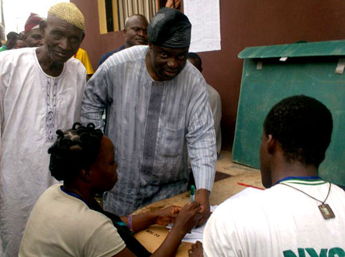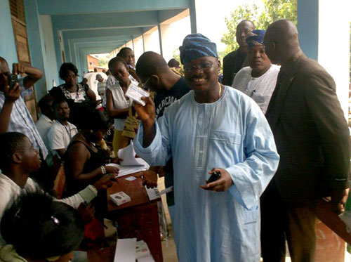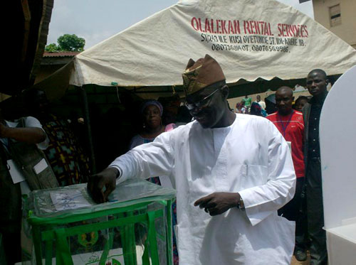 Oyo State Deputy Governor, Honourable Taofeek Arapaja casting his vote for President Goodluck Jonathan during presidential election.