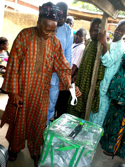 Alahji Lam Adesina casting his vote during presidential election.