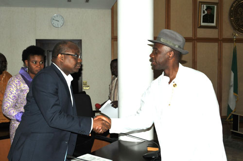 Mr ortune Oguru Futune,Permanent Secretary Govt.House Port Harcourt condoling Mrs Victoria ikpah wife of late mr sunny ikpah during a condolence visit to the family in Port Harcourt.ov chibuike Amaechi congratulates Mr Mutiu Summonu,Chairman Electricity Disribution Commitee,imediate3ly after inuaguration at government House,Port Harcourt.Gov. Chibuike Amaechi exercising his voting right,during the chairmanship and councilorship election at ward 8 unit 14 ubima in lkwerre LGA.