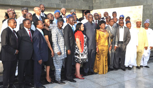 The members later had a group photograph with the governor and his deputy, Princess Sarah Adebisi Sosan.