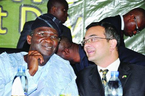 Lagos State Governor, Mr. Babatunde Fashola SAN (left) discussing with the British Deputy High Commissioner in Lagos, Mr. Robin Gwynn (right) during the 2011 World Environment Day with the theme, “Forests: Nature at Your Service” held at the Blue Roof, LTV 8, Agidingbi Road, Ikeja, Lagos, on Tuesday, June 21, 2011.