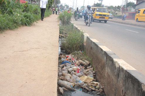 •DIRTY LAGOSIANS...Refuse takes over a drainage channel at Jibowu, Yaba.