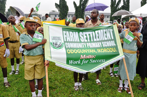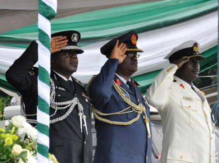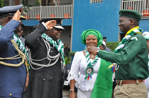 Lagos State Governor, Mr. Babatunde Fashola (SAN) acknowledging cheers from the various groups, school children and voluntary organizations during the National Day Parade to commemorate the 51st National Independence Anniversary of the Federal Republic of Nigeria at the Police Parade Ground, Police College, GRA Ikeja, on Saturday, October 1, 2011.Commissioner of Police, Mr. Yakubu Alkali (left), Tony Omenyi of the Air Force Base Ikeja representative of Commander Beecroft (middle) and Group Captain BJ Gbassa (right) during the National Day Parade to commemorate the 51st National Independence Anniversary of the Federal Republic of Nigeria at the Police Parade Ground, Police College, GRA Ikeja. on Saturday, October 1,2011.Lagos State Governor, Mr. Babatunde Fashola SAN (right), his Deputy, Princess Adejoke Orelope-Adefulire (2nd right) being welcomed by the Commissioner of Police, Mr. Yakubu Alkali (2nd left) and Tony Omenyi of the Airforce Base Ikeja representative of Commander Beecroft (left) during the National Day Parade to commemorate the 51st National Independence Anniversary of the Federal Republic of Nigeria at the Police Parade Ground, Police College, GRA Ikeja. on Saturday, October 1, 2011.Lagos State Governor, Mr. Babatunde Fashola (SAN) inspecting the Guard of Honour mounted by a detachment of the Nigeria Police during the National Day Parade to commemorate the 51st National Independence Anniversary of the Federal Republic of Nigeria at the Police Parade Ground, Police College, GRA Ikeja, on Saturday, October 1, 2011.Pupils of Farm Settlement Community Primary School Odogunyan, Ikorodu march past during the National Day Parade to commemorate the 51st National Independence Anniversary of the Federal Republic of Nigeria at the Police Parade Ground, Police College, GRA Ikeja. on Saturday, October 1, 2011.Members of the Nigeria Police during the National Day Parade to commemorate the 51st National Independence
