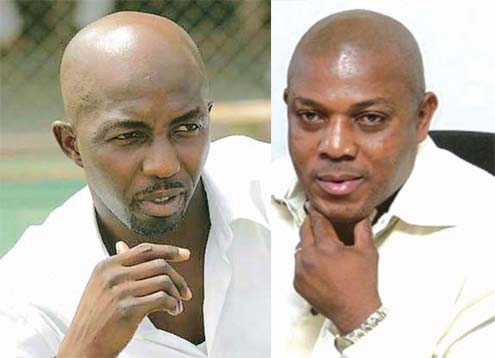 Former Super Eagles' coach Samson Siasia with his successor, Stephen Keshi