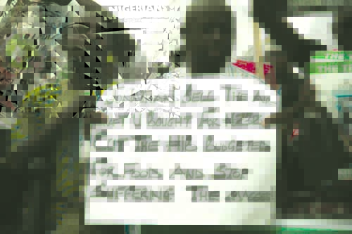 Headlines In Pictures: Day 2 Nationwide Protests Over Fuel Subsidy Removal Published By PM NEWS Live Date 10th January, 2012 Share: •Police watch protestors in Lagos during the demonstrations. •Arewa youth leader protesting the removal of fuel subsidy Related NewsCourt promises accelerated hearing in Ozekhome, 2 others’ forgery trial“48 children stolen in Gombe, I’m not sure of their return,” Gov Yahaya cries outAnambra: Two arrested as troops dismantle IPOB/ESN terrorists’ Mother Valley Comments Please enable JavaScript to view the comments powered by Disqus. Related News Court promises accelerated hearing in Ozekhome, 2 others’ forgery trial “48 children stolen in Gombe, I’m not sure of their return,” Gov Yahaya cries out Anambra: Two arrested as troops dismantle IPOB/ESN terrorists’ Mother Valley
