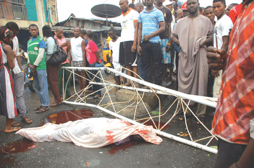 A teacher at St. Gregory College, Obalende, killed by the mast which collapsed on him. PHOTOS: ABEES OGUNBADEJO.