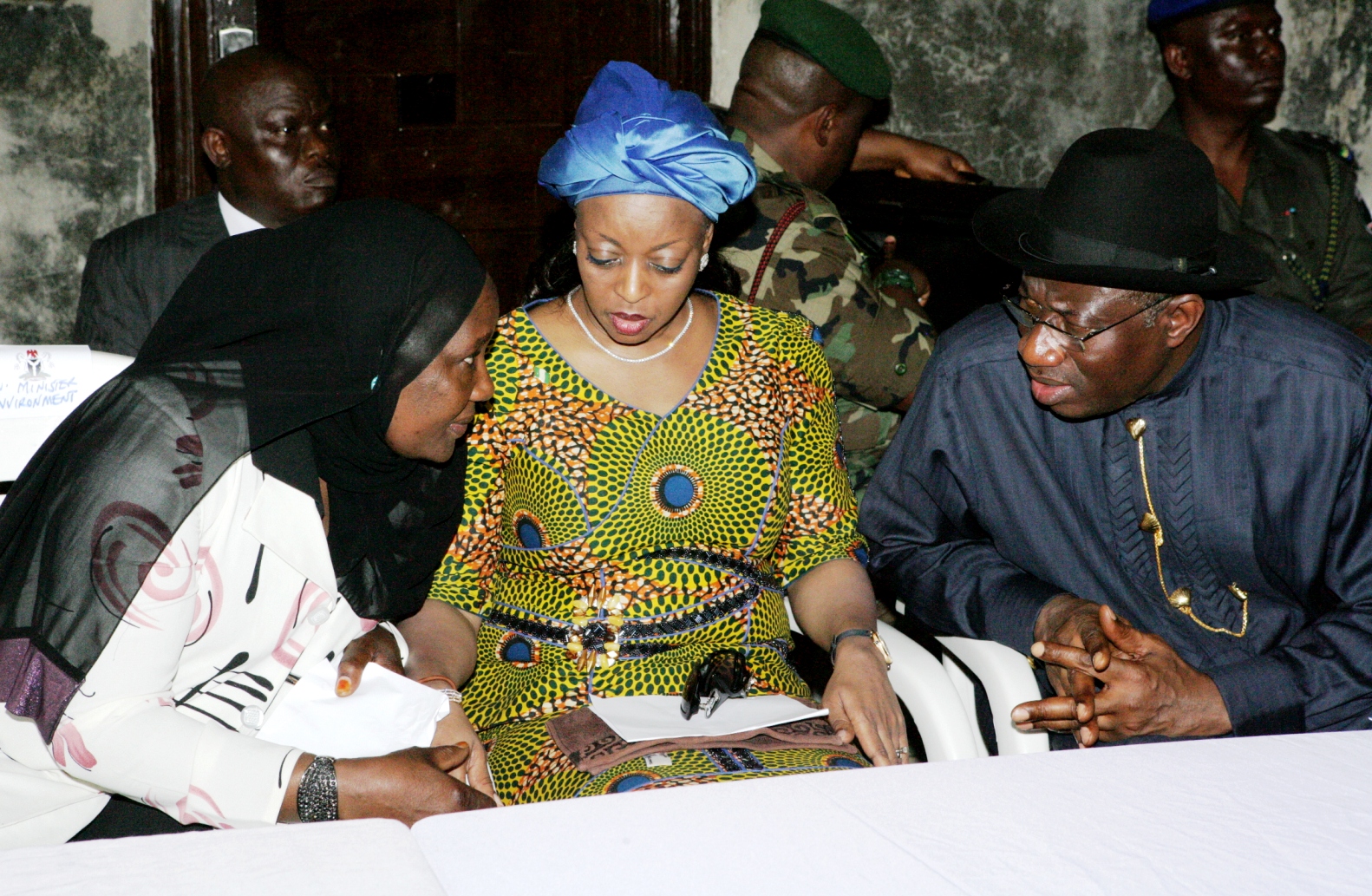 President Jonathan was accompanied to Koluama by Bayelsa State Governor, Hon. Seriake Dickson, Ministers of Petroleum, Deziani Allison-Madueke, Environment, Hadiza Malaifia and Niger-Delta, Elder Godsday Orubebe and was warmly received by the elated community members including traditional rulers, youth, school pupils and students.