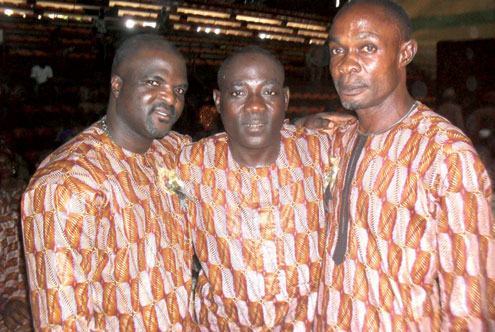 Aare Sir Shina Akanni, Abass Akande Obesere, Duchess of Gospel music, Esther Igbekele, Adeyinka Ishola a.k.a Askari, Alhaji Suraj Alamu Akere a.k.a Shaura and other top musicians on Wednesday, 30 May, 2012, stormed the Nigerian Institute of Sports gymnasium complex, National Stadium, Surulere, Lagos, to celebrate with the Lagos State chapter of the Performing Musician Association of Nigeria, PMAN.