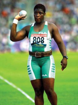 The graduate of Azusa Pacific University in 2006 with a Bachelor of Social Work, won gold medal in shot put at the 2002 Commonwealth Games and has won three consecutive titles at the All-Africa Games from 1999 to 2007. She also won the women’s Shot Put with a season’s best throw of 18.18m in Calabar.