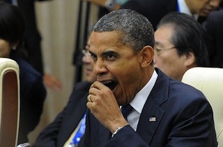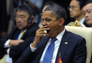 He is not superhuman: US President Barack Obama yawns as he attends the Plenary of East Asian Summit at the Peace Palace in Phnom Penh, Cambodia on Tuesday