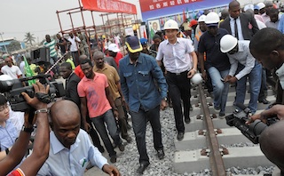 Fashola at the track laying of the Lagos Light rail