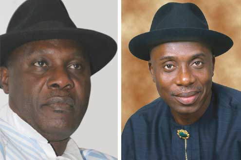 Nigeria’s Rivers State governor, Chibuike Amaechi and Minister of Niger Delta Affairs, Mr. Godsday Orubebe trade tackles