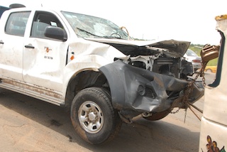 Witnesses said four persons were in the Hilux, with the registration number KSF 918 AU, when it plunged into the Majidun River.