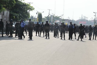 Rivers Police mount a barricade