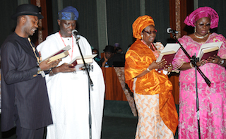 President Goodluck on Wednesday swore in 11 Ministers whose nominations were approved by the Senate about three weeks ago just before the commencement of the weekly meeting of Federal Executive Council, FEC on Thursday.