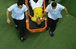 Neymar was carried off grimacing in agony after an aerial collision with Colombia defender Juan Camilo Zuniga towards the end of the contest. The 22-year-old got a knee in the back.
