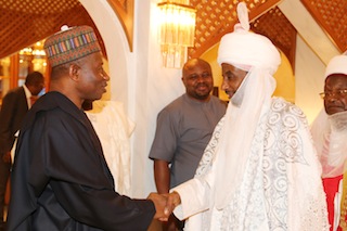 President Goodluck Jonathan right welcoming the Emir of Kano, Alhaji Sanusi Lamido to the Presidential Villa when Northern Traditional Rulers led by the Sultan of Sokoto came to break Ramadan fast with the President at the State House Abuja on Wednesday 22nd july 2014