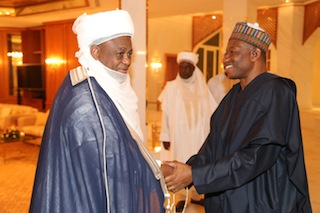 President Goodluck Jonathan right welcoming the Saultan of Sokoto Alh Saa’ad Abubakar to the Presidential Villa
