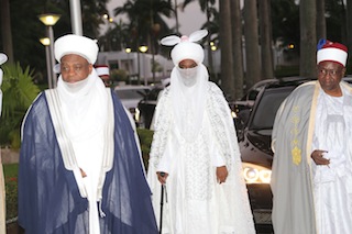 From left: Saultan of Sokoto Alhaji Saa’ad Abubakar the Emir of Kano Sanusi Lamido Sanusi and the Emir of Katsina Alh Abdulmmuni Usman arriving the State House in Abuja