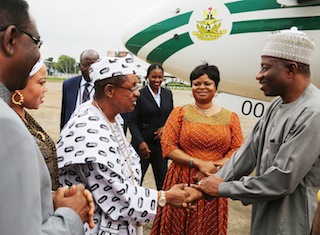 In Pictures: President Goodluck Jonathan arrives Lagos on one-day visit