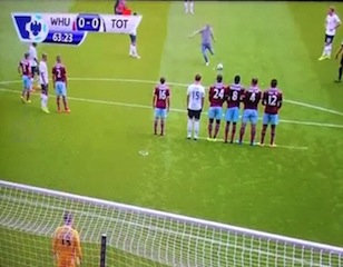 The supporter ran on and kicked the ball towards goal as Tottenham Hotspur prepared to take a free-kick during their 1-0 win at Upton Park on Saturday, which was the season’s opening day.