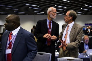 Experts speak together on the opening day of a two-day meeting on consultation on potential Ebola therapies and vaccines on September 4, 2014 in Geneva