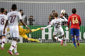 However, Mueller paid no attention to the fuss or to the pleas from the sidelines as Bayern coach Pep Guardiola urged Robert Lewandowski to take the penalty. The German international stepped up and converted the spot kick.