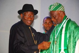 Presiden Goodluck Jonathan honours Pa Taiwo Akinkunmi, designer of the national flag