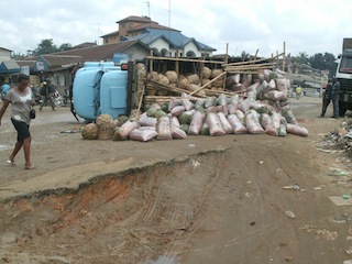 “On daily basis, our trucks get damaged”, he said, adding that, on more than one occasion, both products and vehicle go in flames as a result of the bad road”.