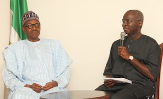 All Progressives Congress Presidential Aspirant and former  Head of State, Major-General Muhammadu Buhari (left) and Lagos State Governor, Mr. Babatunde Fashola, SAN (right)