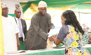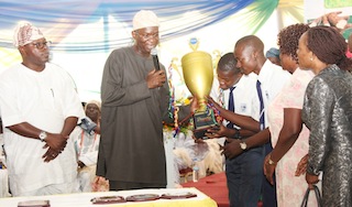 Lagos State Governor, Mr. Babatunde Fashola, SAN (2nd left) presenting a trophy to representatives of Ikeja Senior Grammar School, Mr .Oluyode Olalekan (middle) and Mr. Adewunmi Olalekan (3rd right), Winner of Agric. Science Quiz Competition held amongst Secondary Schools in Lagos State while the Commissioner for Agriculture and Cooperatives, Prince Gbolahan Lawal (left) watches with admiration during the 2014 World Food Day/Agric Value Chains Empowerment with the theme, “Feeding the World, caring for the Earth”, organized by the Lagos State Ministry of Agriculture and Cooperatives at the Johnson Agiri Agricultural Complex, Oko-Oba, Agege, Lagos on Thursday, October 16, 2014.Lagos State Governor, Mr. Babatunde Fashola, SAN (middle) presenting a Deed of Sublease to Allottees of Agric Land to one of the beneficiaries while Commissioner for Agriculture and Cooperatives, Prince Gbolahan Lawal (left) watches with admiration during the 2014 World Food Day/Agric Value Chains Empowerment with the theme, “Feeding the World, caring for the Earth”, organized by the Lagos State Ministry of Agriculture and Cooperatives at the Johnson Agiri Agricultural Complex, Oko-Oba, Agege, Lagos on Thursday, October 16, 2014.Lagos State Governor, Mr. Babatunde Fashola, SAN (middle) presenting a Deed of Sublease to Allottees of Agric Land to one of the beneficiaries while Commissioner for Agriculture and Cooperatives, Prince Gbolahan Lawal (left) watches with admiration during the 2014 World Food Day/Agric Value Chains Empowerment with the theme, “Feeding the World, caring for the Earth”, organized by the Lagos State Ministry of Agriculture and Cooperatives at the Johnson Agiri Agricultural Complex, Oko-Oba, Agege, Lagos on Thursday, October 16, 2014.Cross section of artisans, participants, invited guests, beneficiaries, professionals from the both private and public sector in the agricultural industry and other stakeholders during the 2014 World Food Day/Agric Value Chains Empowerment with the theme, “Feeding the World, caring for the Earth”, organized by the Lagos State Ministry of Agriculture and Cooperatives at the Johnson Agiri Agricultural Complex, Oko-Oba, Agege, Lagos on Thursday, October 16, 2014.