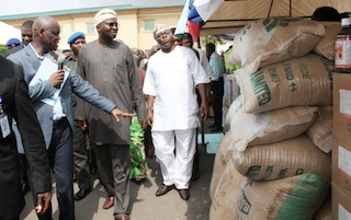 Governor Babatunde inspecting the agricultural produce during the 2014 World Food Day/Agric Value Chains Empowerment
