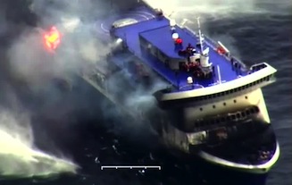 Four bodies have been recovered from icy seas during an operation to rescue hundreds of passengers stuck on a blaze-hit car ferry crossing from Greece to Italy, a Greek minister said on Monday.