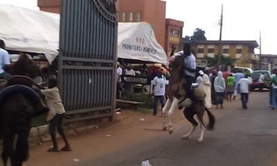 Local farmers were also on hand to welcome JonathanThe locals and horse riders also received President Jonathan
