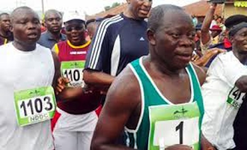 Governor Adams Oshiomhole of Edo State (M) during the last Okpekpe marathon