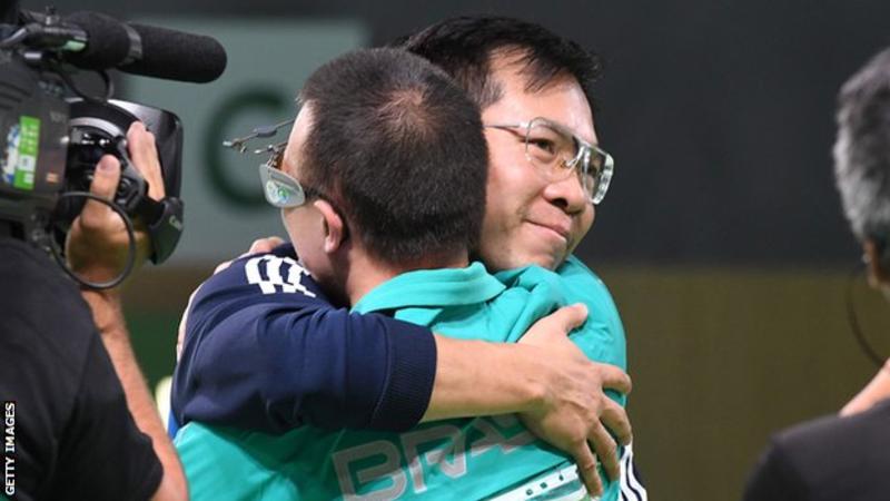 Hoang scored 202.5 points to edge out home favourite Felipe Wu who recorded 202.1 points to clinch silver and Brazil’s first medal of the Games.