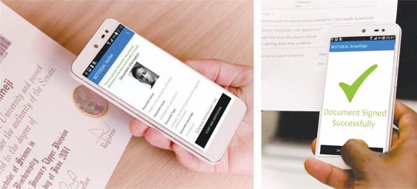“Botoseal(TM) Verifier application does not only seamlessly verify the authenticity of a document, but also gives the users access to tamper-evident digital copies of their document on the go. This solution offers a cost saving and efficient means of getting copies of paper documents, without the need for printers or photocopiers.