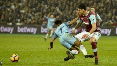 West Ham, who made errors to lose possession for each of City’s three first-half goals, have been beaten heavily by City twice at home in 2017, having lost 5-0 in their FA Cup meeting last month.