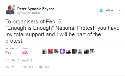 Ekiti state governor Ayo Fayose has openly stated his support for Tu Baba’s would be protest come Feb 6.
