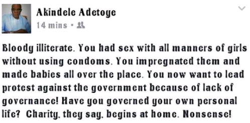 Obafemi Awolowo University Professor Akindele Adetoye who threw shades at 2face over the nationwide protest he is organising, stating that the entertainment artiste was impregnating all kinds of girls without condoms, has apologised.