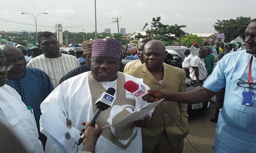 Ali Modu Sheriff in front of the Wadata Plaza in Abuja to reopen the PDP Secretariat