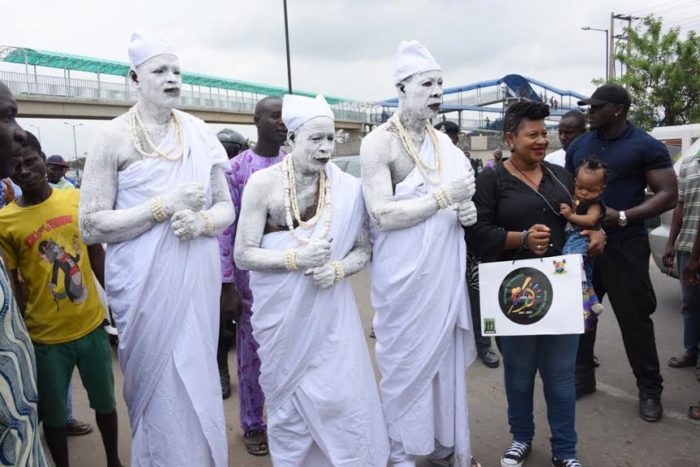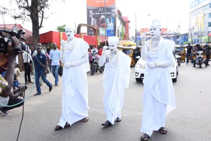 Residents troop out to catch a glimpse of the Three Wise Men, popularly known as Agbagba Meta to herald the commencement of Lagos @ 50 Celebrations across the State on Saturday.Masters Oloyede Sasore(left); Yusuf Quadri (middle) and Uzzeifa Adam (right) receiving gift packs from the Three Wise Men, popularly known as Agbagba Meta at Oshodi to herald the commencement of Lagos @ 50 Celebrations across the State on Saturday.Residents troop out to catch a glimpse of the Three Wise Men, popularly known as Agbagba Meta to herald the commencement of Lagos @ 50 Celebrations across the State on Saturday.A resident, Tobi Abiodun receiving a gift pack from the Three Wise Men, popularly known as Agbagba Meta at Ikeja to herald the commencement of Lagos @ 50 Celebrations across the State on Saturday