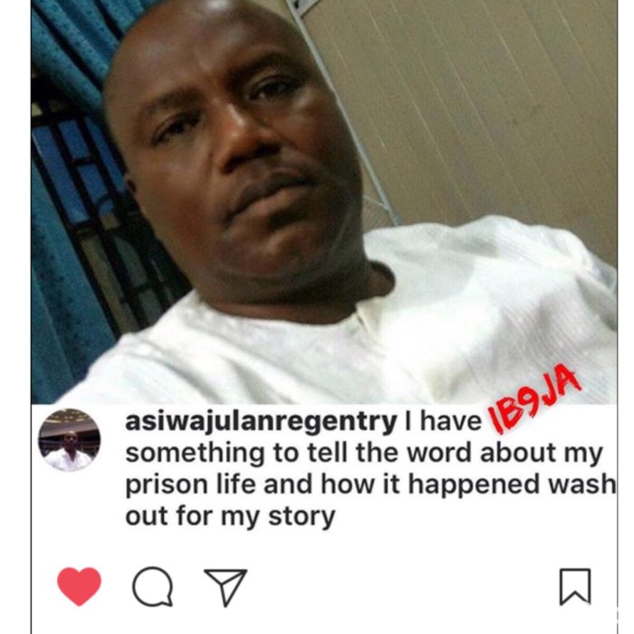 Lanre Gentry who was released from Kirikiri prison, Lagos on Tuesday disclosed this on his Instagram page, @asiwajulanregentry