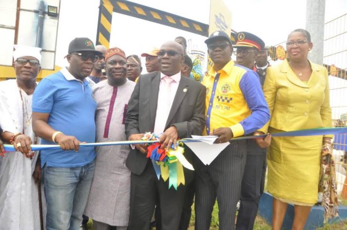 Commissioner for Special Duties and Inter-governmental Relations, Seye Oladejo (suit) inaugurating the LASEMA response Unit in Lagos