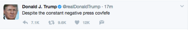 “Despite the constant negative press covfefe,” read the US leader’s short tweet sent early Wednesday.