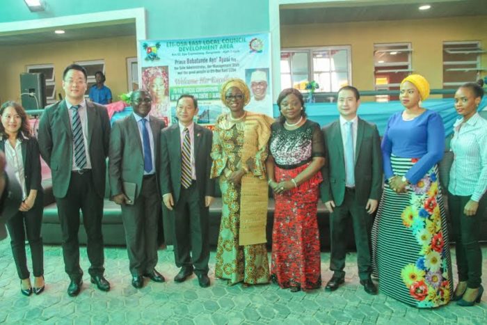L-R Public Relations Director a Huawei Nigeria Miss Feng Hong Juan,MD of Huawei Nigeria Mr Frank Li,senior solution architect Huawei Nigeria,Yemi Joseph,Chinese Consul Mr Cao Xiao Liang,First Lady Mrs Bolanle Ambode,Commissioner for women affairs and poverty alleviation Hon Lola Akande,DMD public sector Mr Leo Li,Mrs Titi Ayinla and Miss Lola.