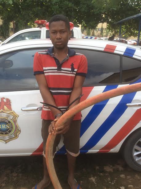 The second cable thief, Andrew Onoriode 25, who claimed to be a casual staff of Nigerian Bottling Company, Agidingbi plant, Ikeja was arrested behind Shoprite Ikeja with a freshly cut armoured cable believed to belong to the Lagos State Ministry of Works.
