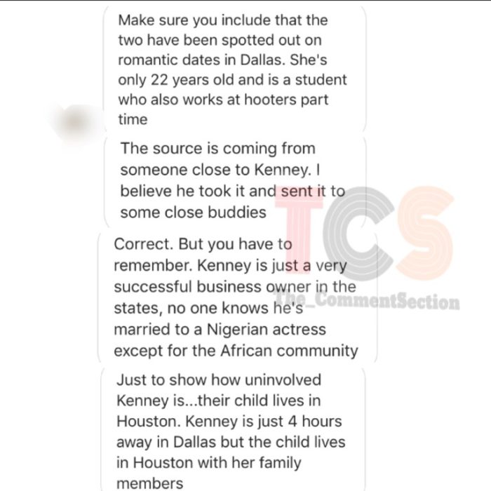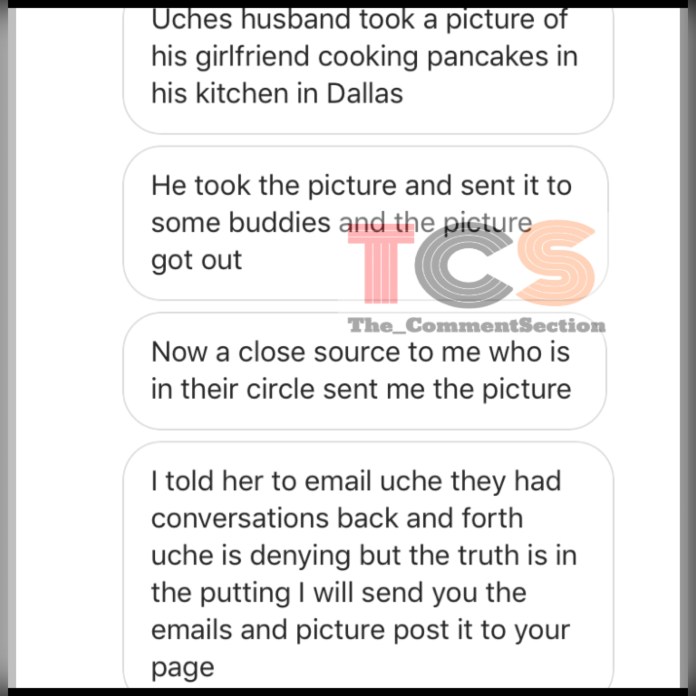 According to a TCS source, Uche’s husband Kenney is dating a 22-year old African American student Teresa and the duo have been spotted out and about on romantic dates in Dallas where he is based. Read the full gist and see more photos below